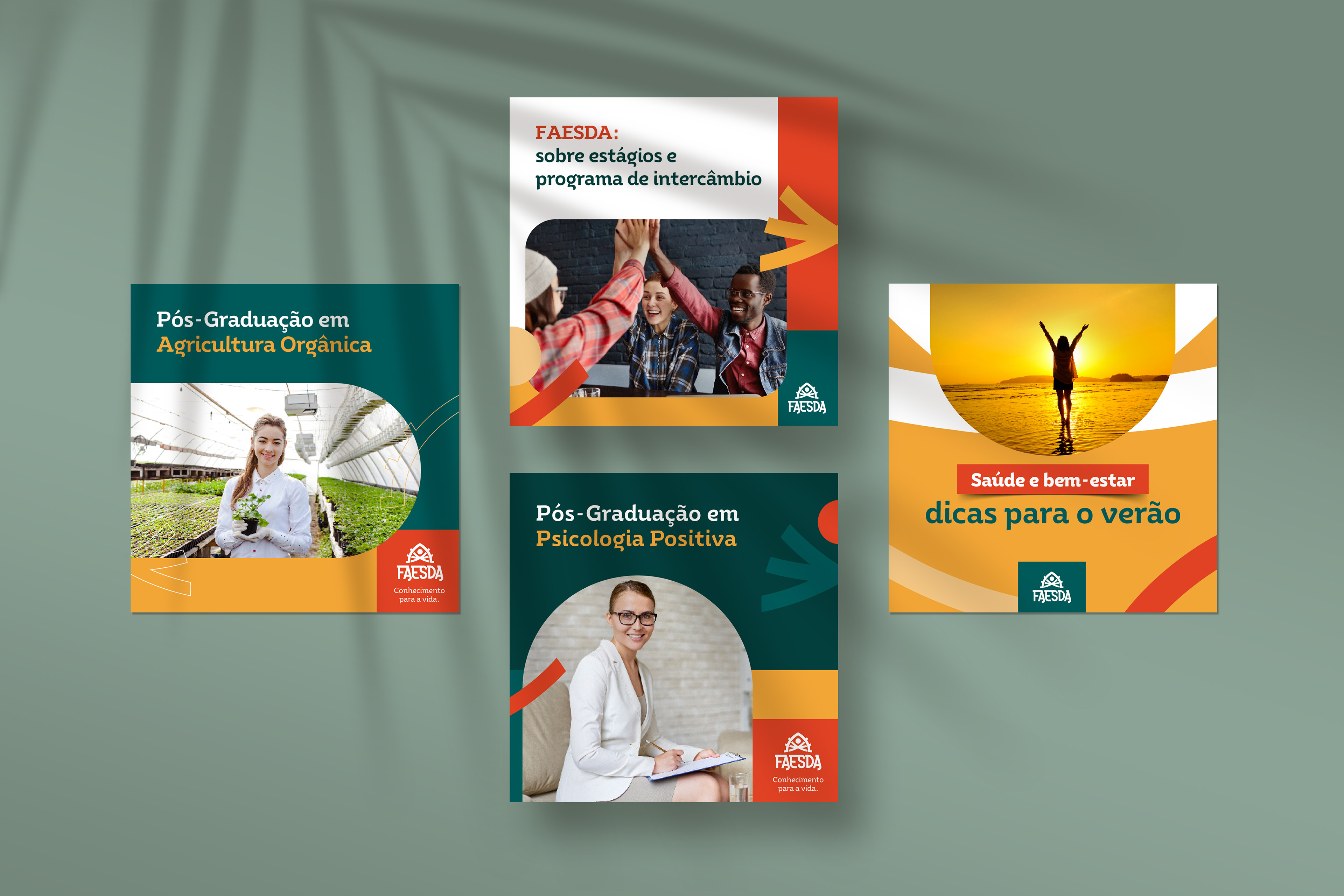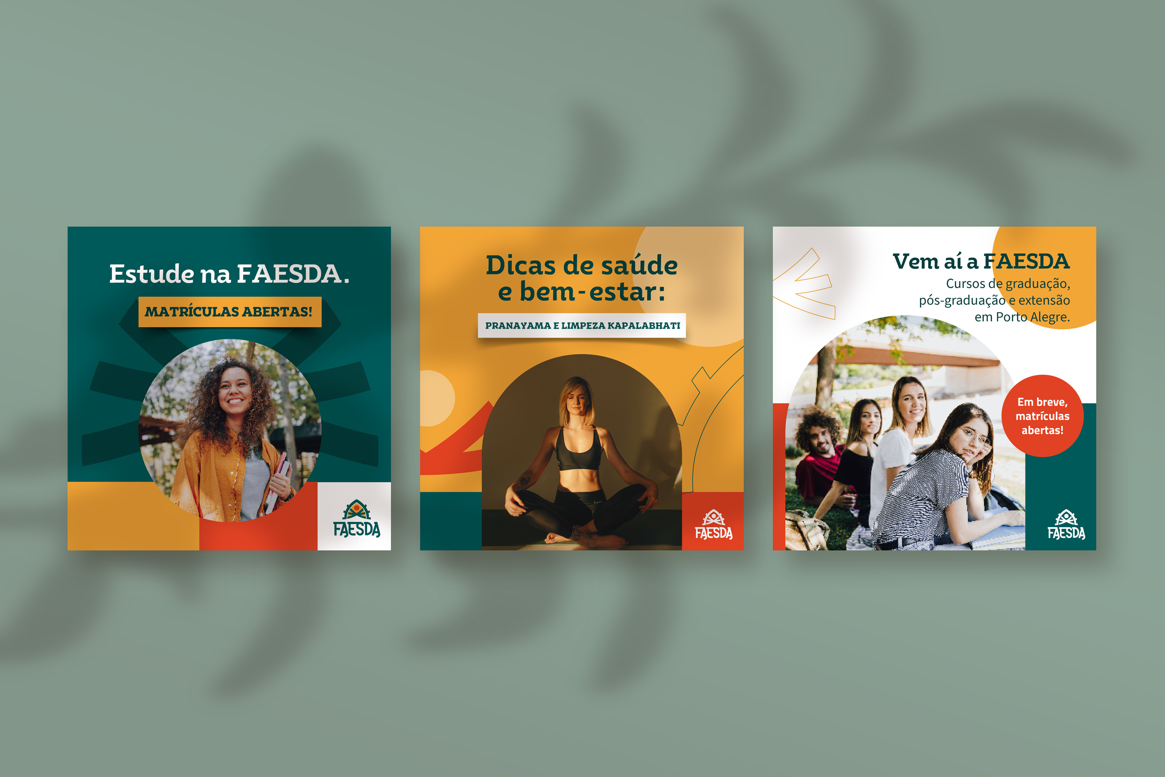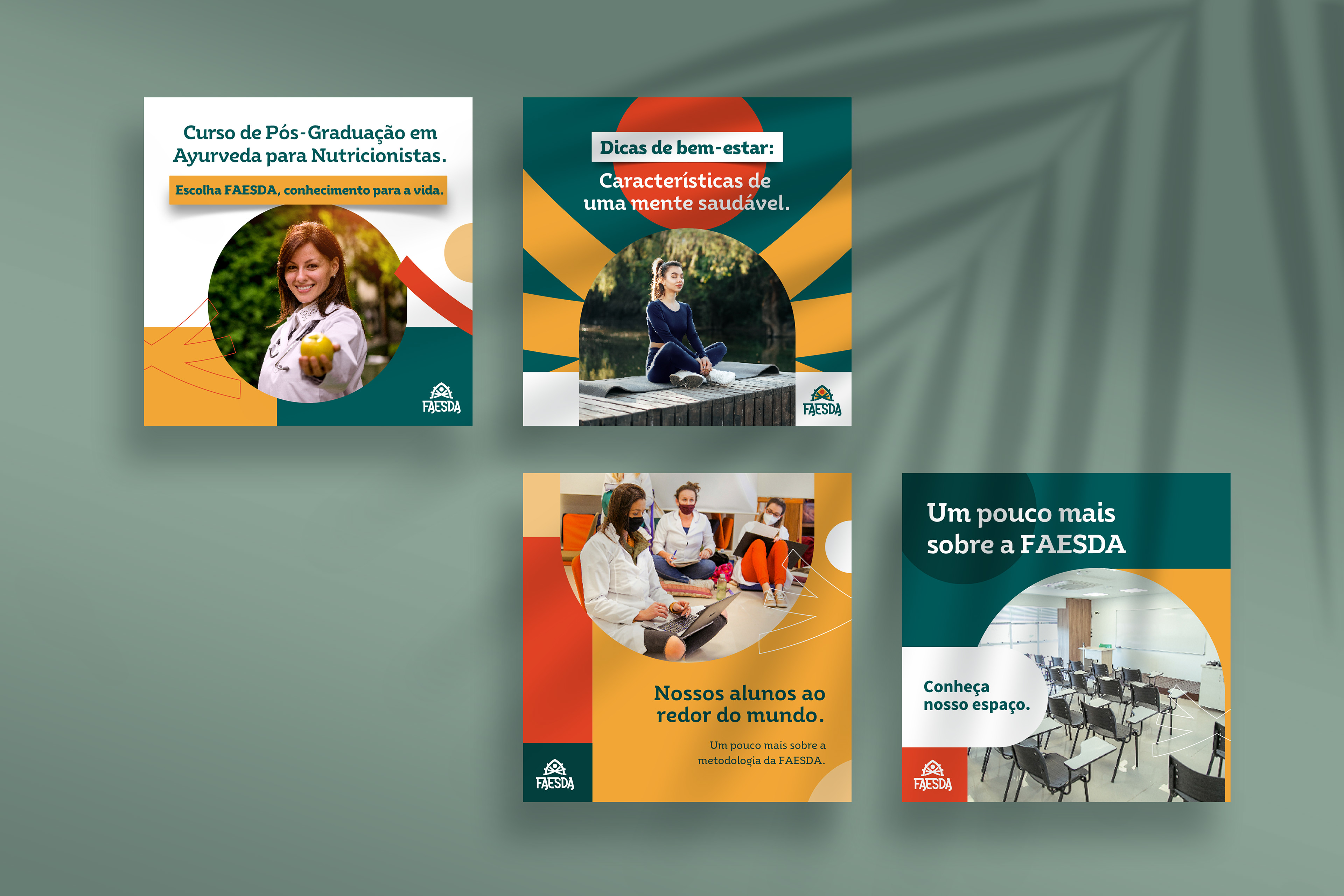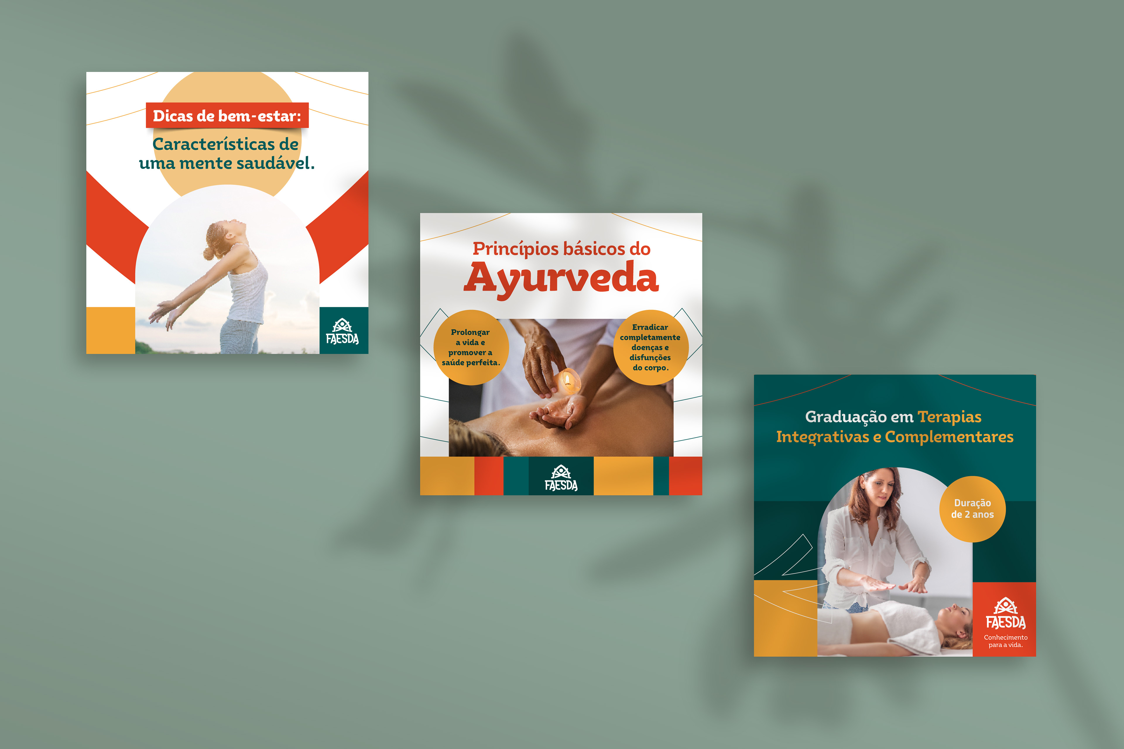 Criação da identidade visual para as redes sociais da FAESDA, a primeira faculdade de Ayurveda do Brasil, unindo tradição, conhecimento ancestral e comunicação contemporânea.